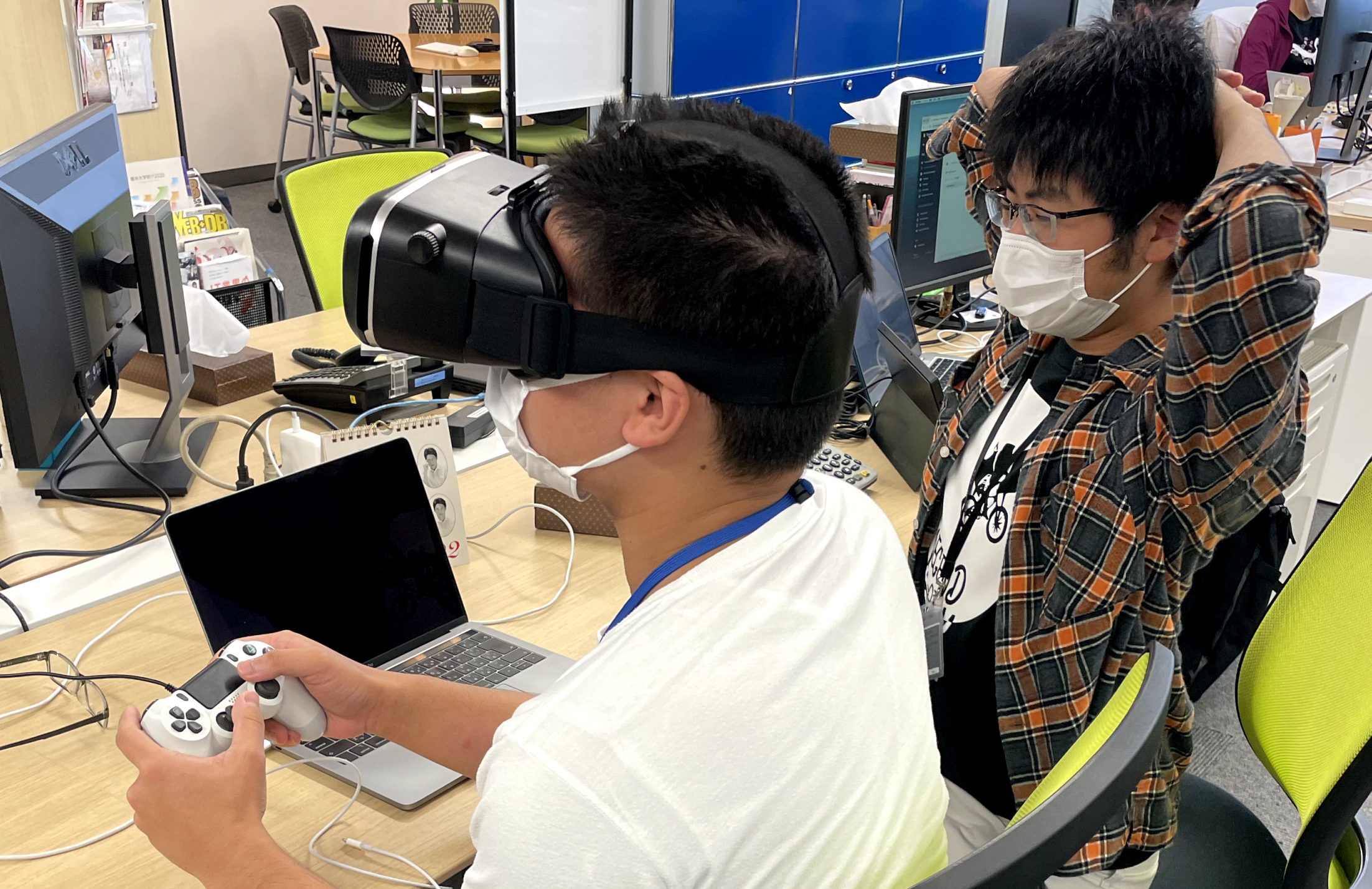VRゴーグルは、スマートフォンをゴーグルキットにはめ込むだけの簡単なものですが、VRそのものを始めて体験するインターン生が多く、またゲーム的な要素も高いため、人気のカリキュラムです。